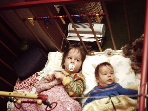 Regina being busy in the corridor in front of our apartment. I’m missing some great photos of him looking at her in her craddle. If I find them I’ll add them here.